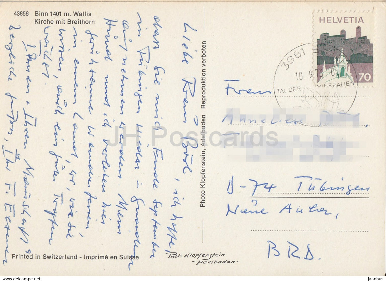 Binn 1401 m - Wallis - Kirche mit Breithorn - Kirche - 1976 - Schweiz - gebraucht