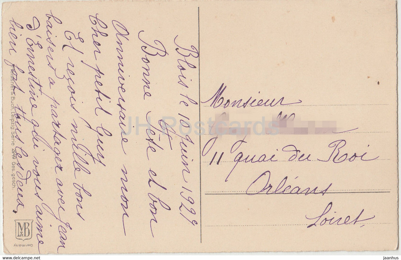 Geburtstagsgrußkarte - Jubiläum - Blumen - Tulpen - Illustration - MB - alte Postkarte - 1929 - Frankreich - gebraucht