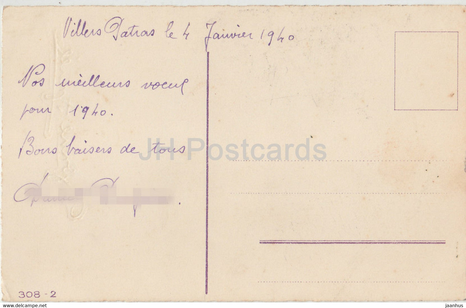 Geburtstagsgrußkarte – Bonne Annee – Blumen – Tulpen – 308-2 – Illustration – alte Postkarte – 1940 – Frankreich – gebraucht