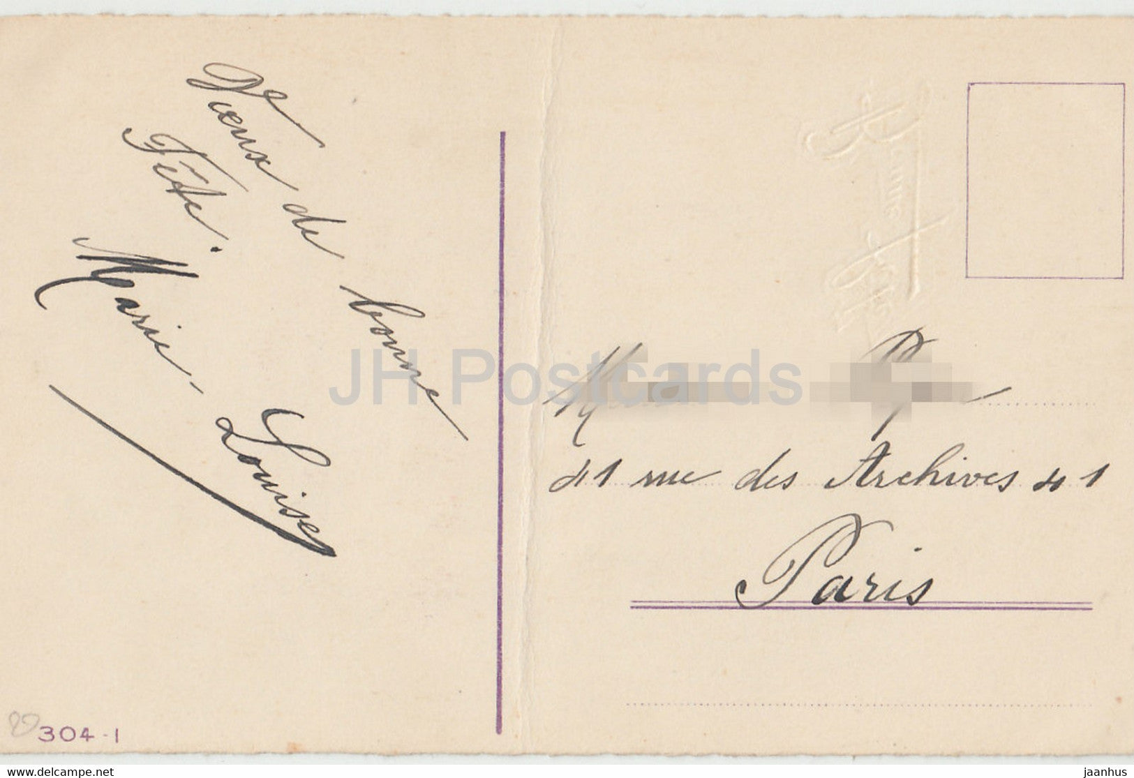 Geburtstagsgrußkarte - Bonne Fete - Blumen - Rosen - 304-1 - Illustration - alte Postkarte - Frankreich - gebraucht