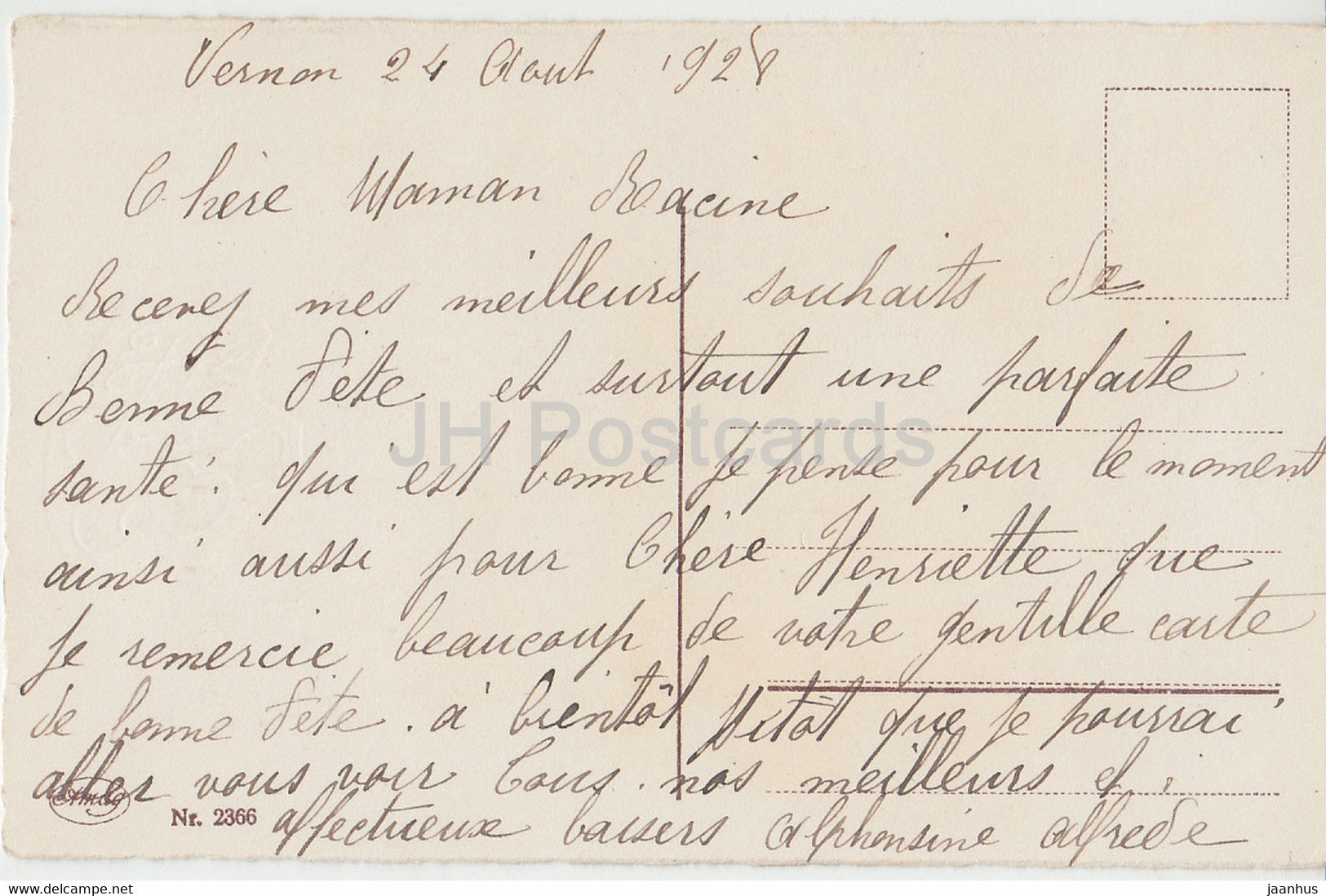 Geburtstagsgrußkarte – Bonne Fete – rote Blumen – Illustration – Amag 2366 – alte Postkarte – 1926 – Frankreich – gebraucht