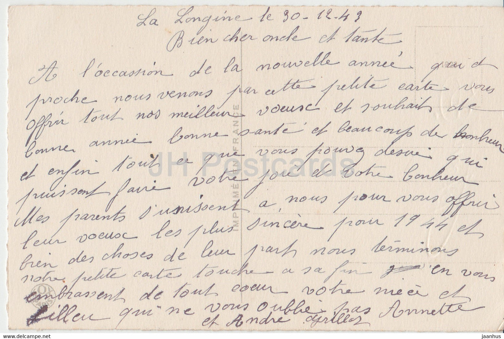Geburtstagsgrußkarte – Bonne Fete – rote Blumen in einer Vase – Illustration – alte Postkarte – 1943 – Frankreich – gebraucht