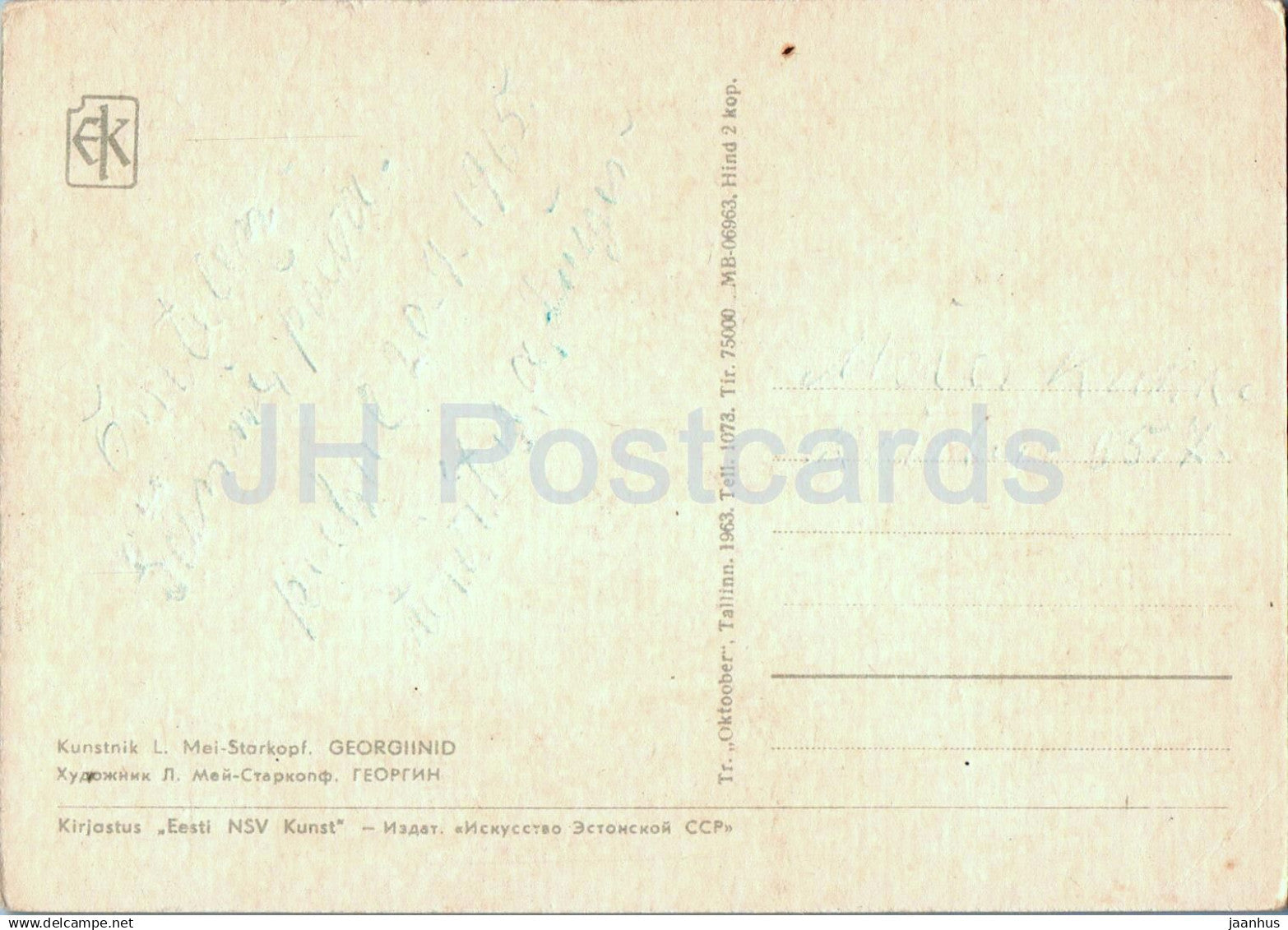 Geburtstagsgrußkarte von L. Mei-Starkopf - Dahlien - Blumen - Illustration - 1963 - Estland UdSSR - gebraucht
