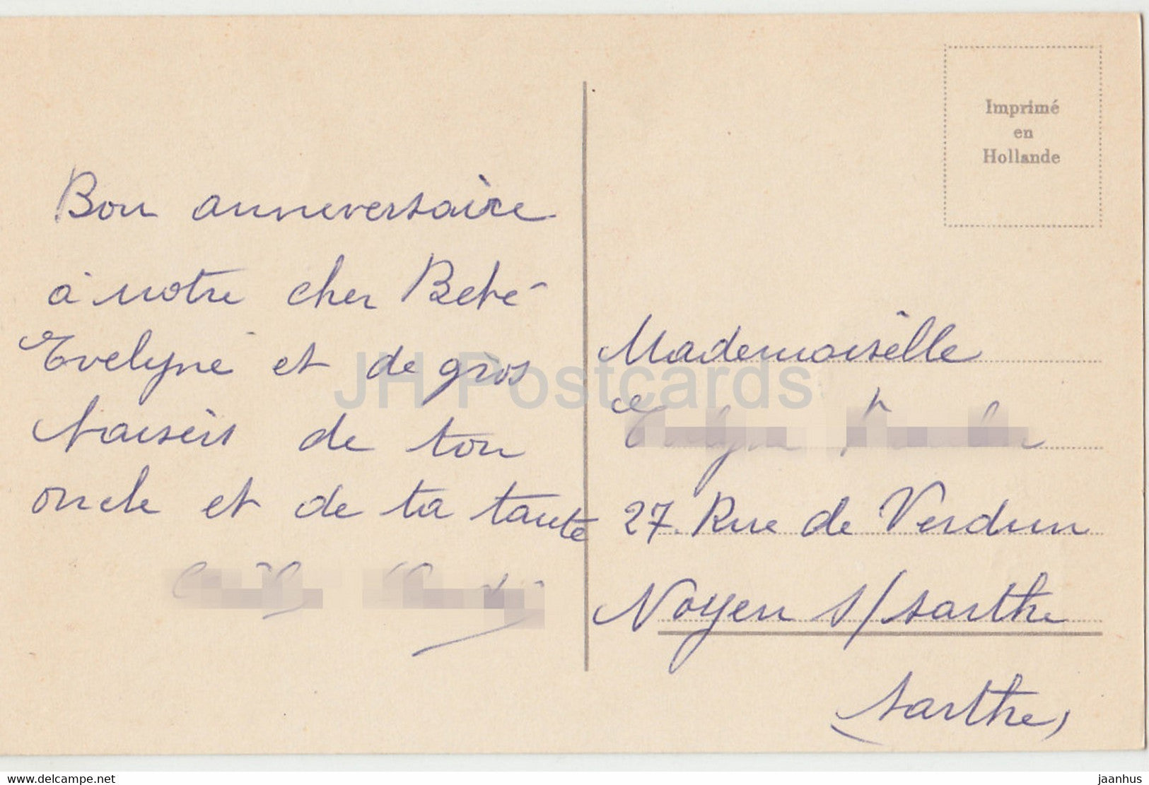 Geburtstagsgrußkarte - Heureux Anniversaire - Blumen - Tulpen - 1 - Illustration - alte Postkarte - Frankreich - gebraucht