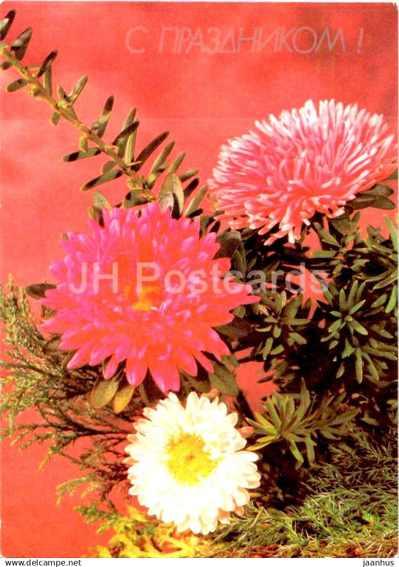 Geburtstagsgrußkarte - Rote Chrysantheme - Blumen - Ganzsachen - 1990 - Russland UdSSR - gebraucht