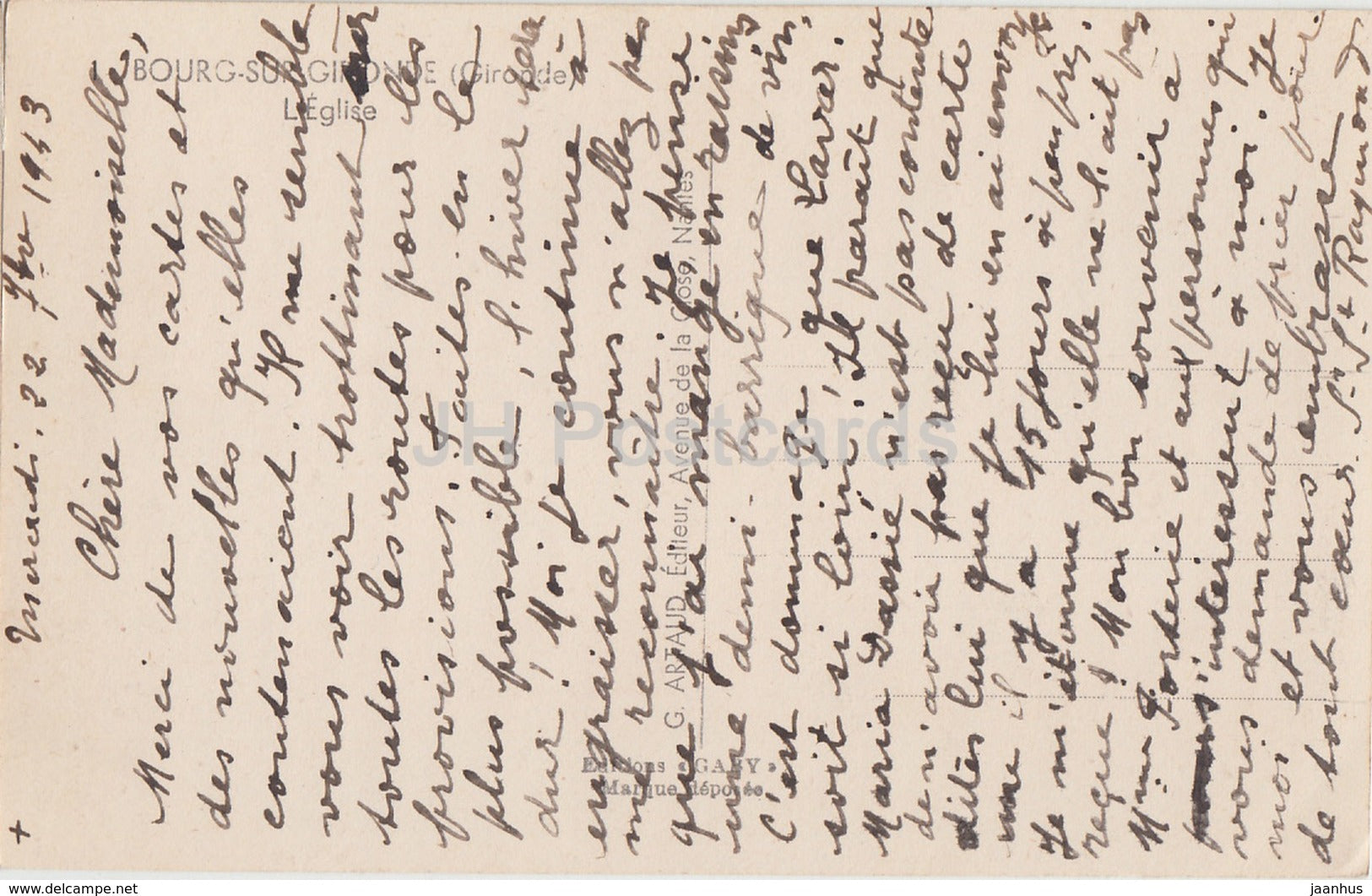 Bourg Sur Gironde - L'Eglise - Kirche - alte Postkarte - 1943 - Frankreich - gebraucht