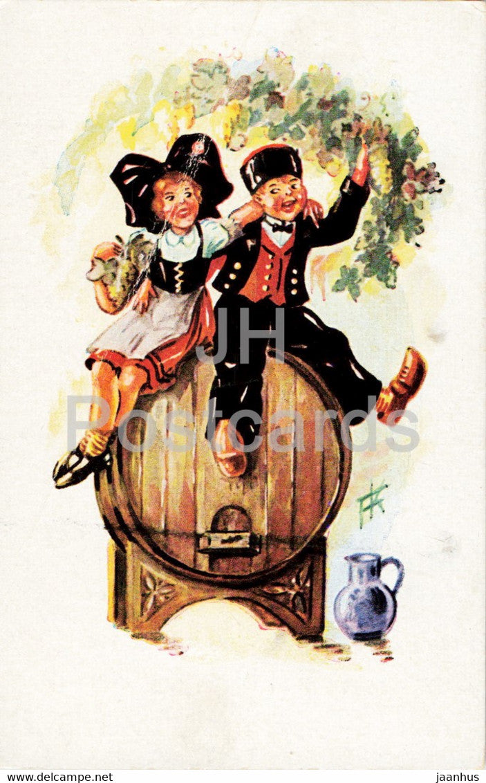 Junge und Mädchen – Volkskostüme – Illustration – FK – 304 – ALWY – alte Postkarte – Frankreich – gebraucht