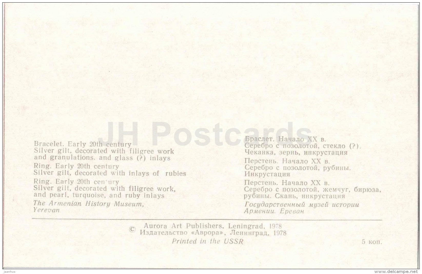 Armband, Ring, 20. Jahrhundert – Schmuck – Armenisches Geschichtsmuseum – 1978 – Russland UdSSR – unbenutzt
