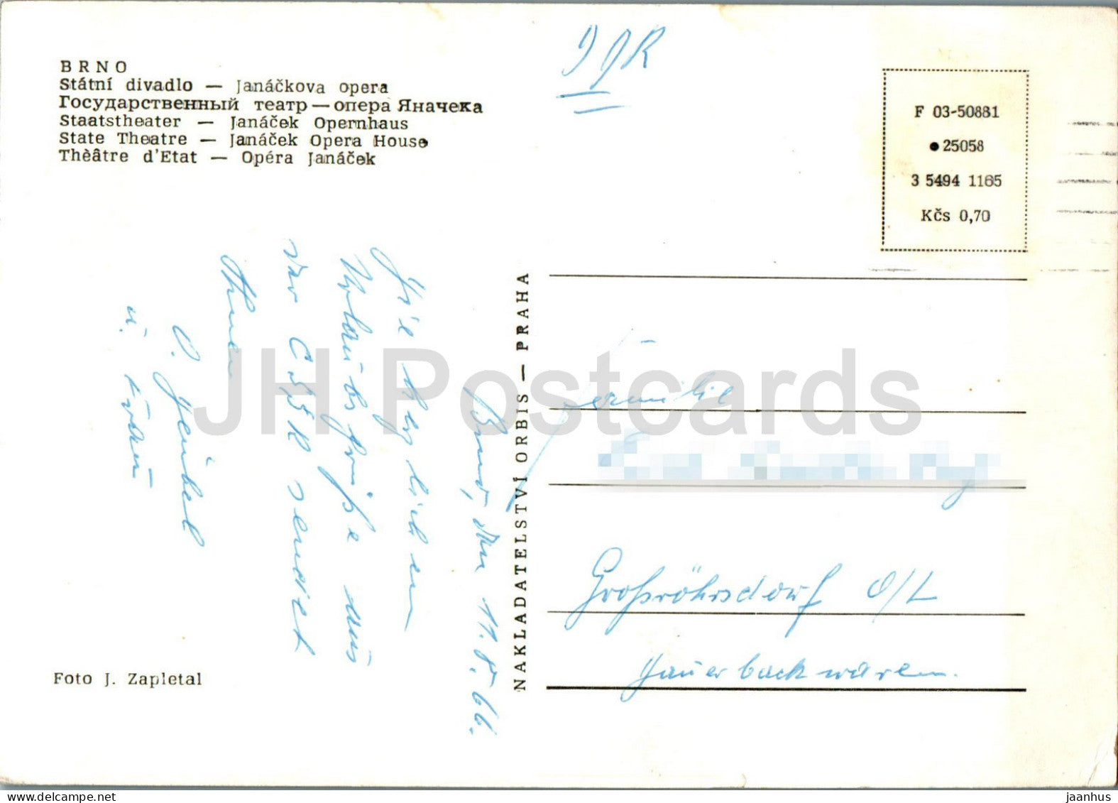 Brünn - Statni Divadlo - Janackova-Oper - Staatstheater - Janacek-Oper - 1966 - Tschechische Republik - Tschechoslowakei - gebraucht