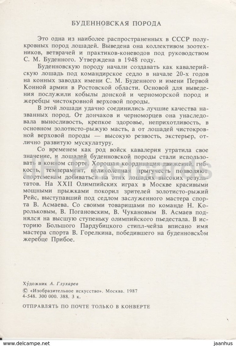 Budyonny-Pferd – Illustration von A. Glukharev – Pferde – Tiere – 1988 – Russland UdSSR – unbenutzt