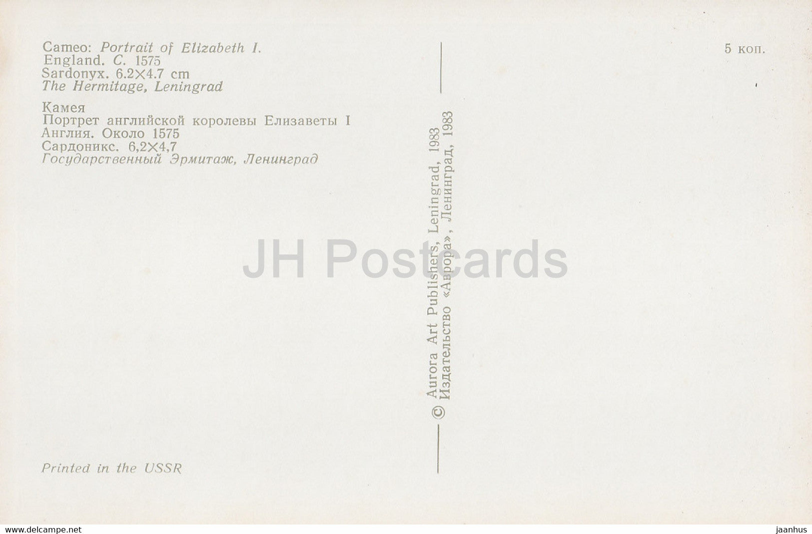 Cameo – Porträt von Elisabeth I. – Englische angewandte Kunst – 1983 – Russland UdSSR – unbenutzt