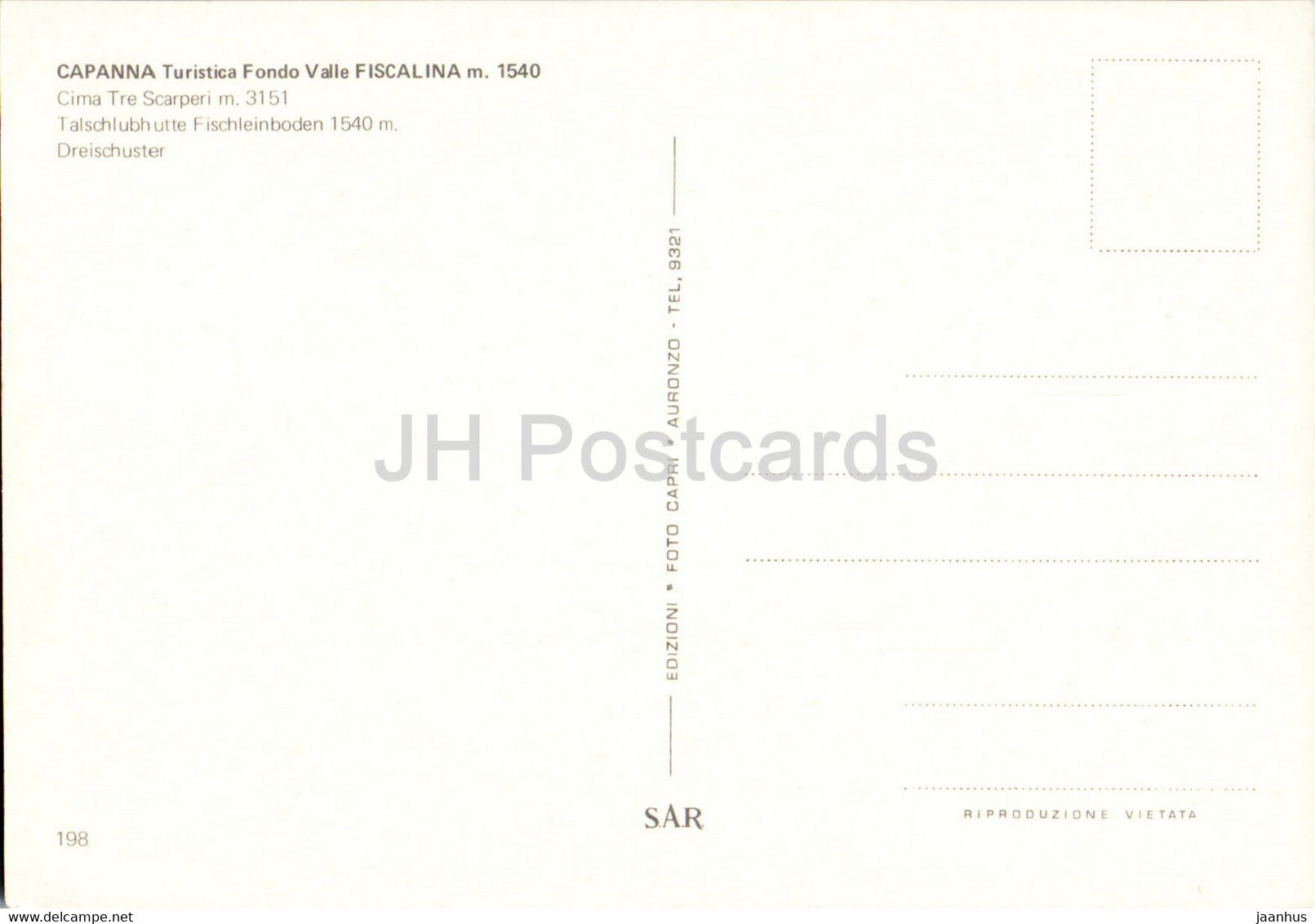 Capanna Fondo Valle Fiscalina 1540 m - Cima Tre Scarperi - Fischleinboden 1540 m - Auto - 198 - Italien - unbenutzt