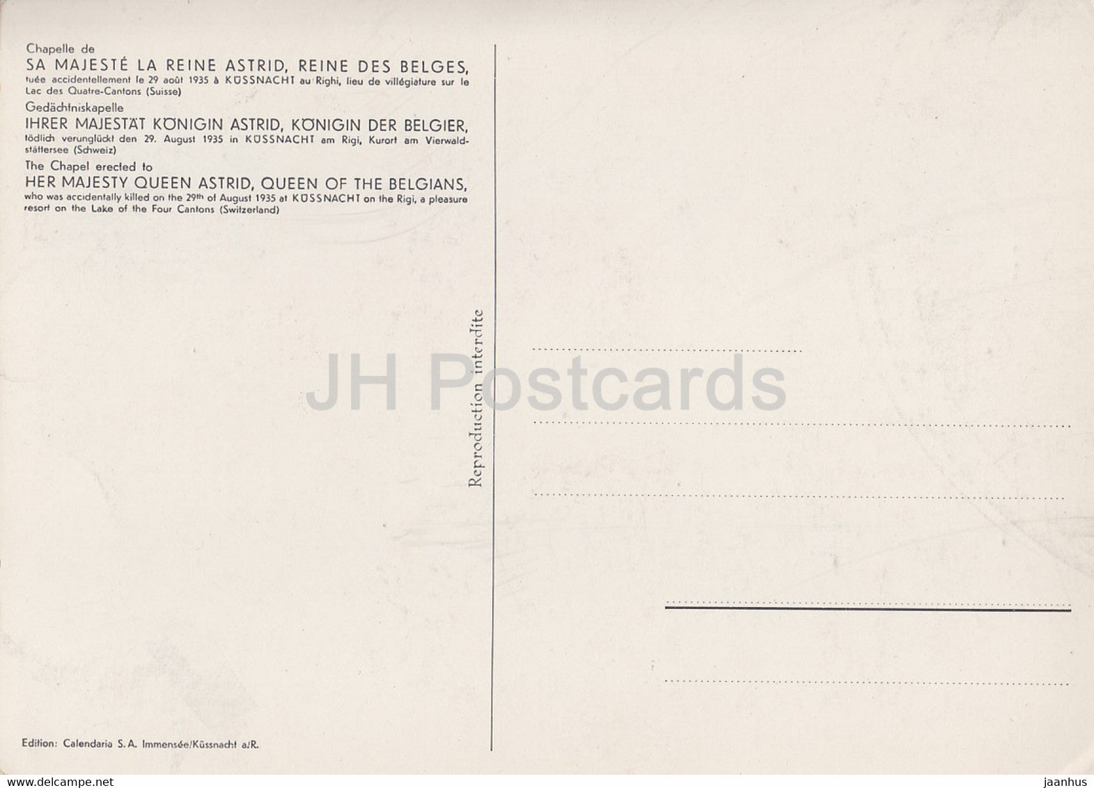 Chapelle de Sa Majeste la Reine Astrid - Reine des Belges - Schweiz - unbenutzt