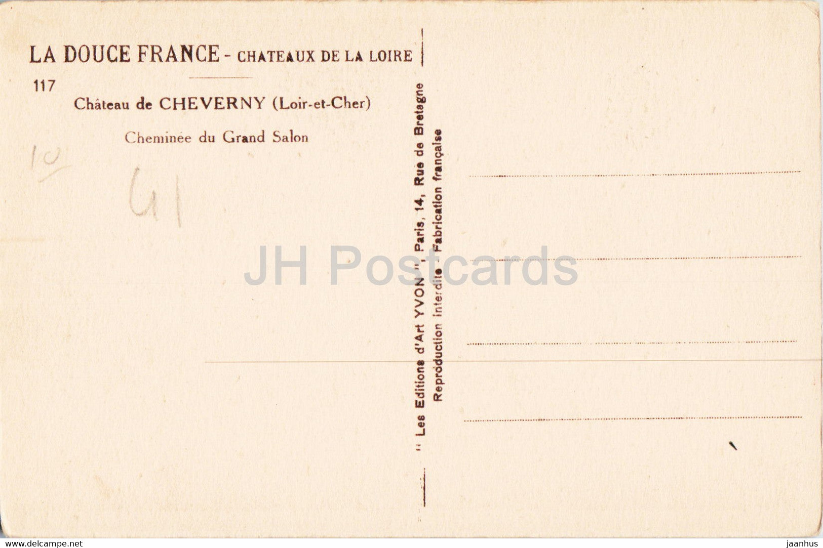 Chateau de Cheverny - Cheminee du Grand Salon - Schloss - 117 - alte Postkarte - Frankreich - unbenutzt
