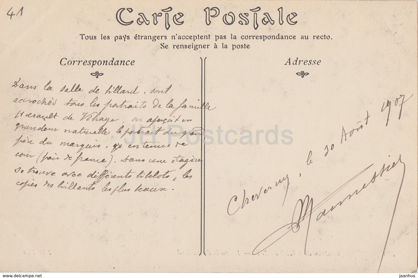 Chateau de Cheverny - La Salle de Billard - Schloss - 289 - alte Postkarte - 1907 - Frankreich - gebraucht
