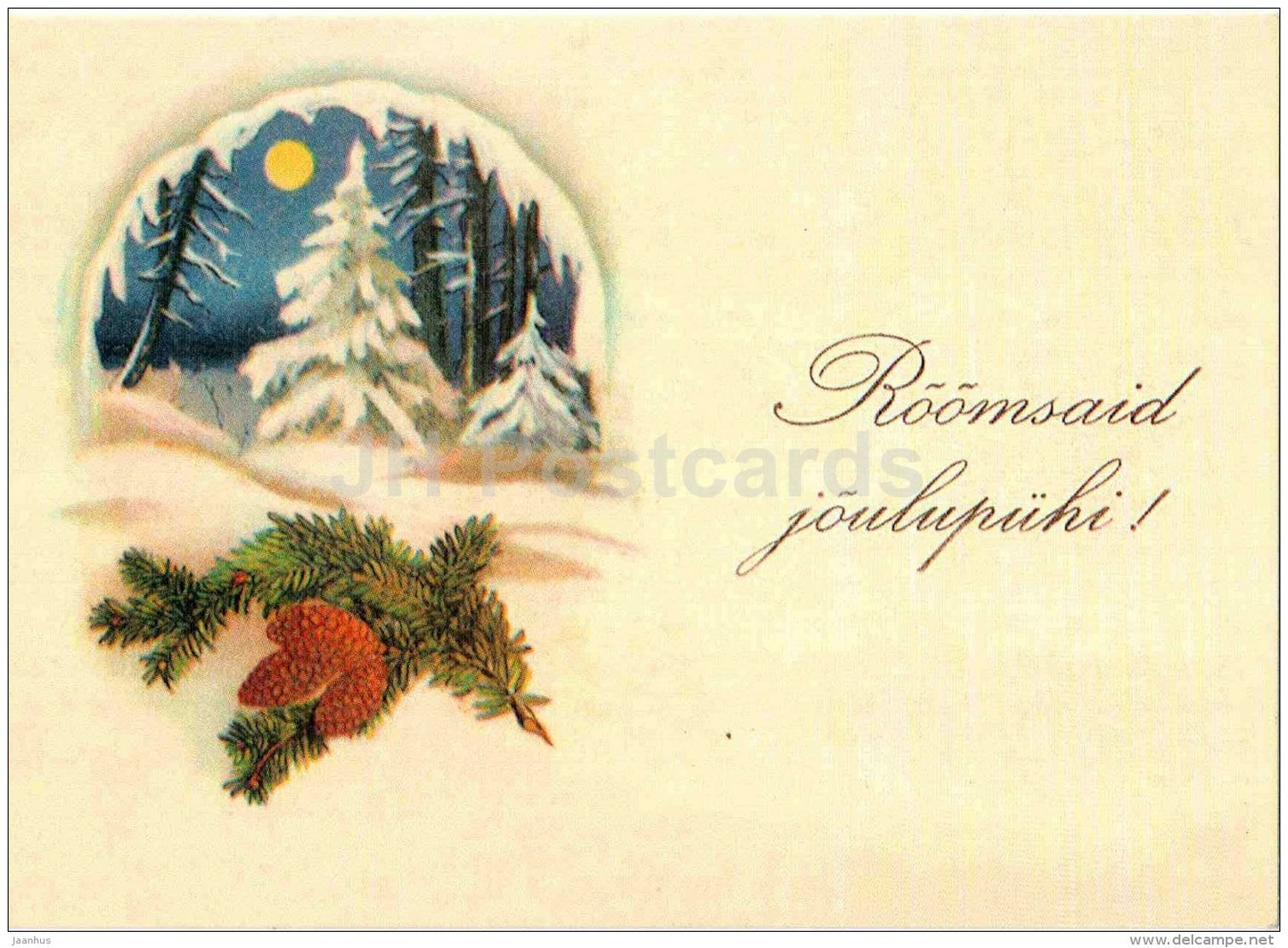 Weihnachtsgrußkarte – Tannenzapfen – Blick auf den Winterwald – alte Postkartenreproduktion – Estland – unbenutzt