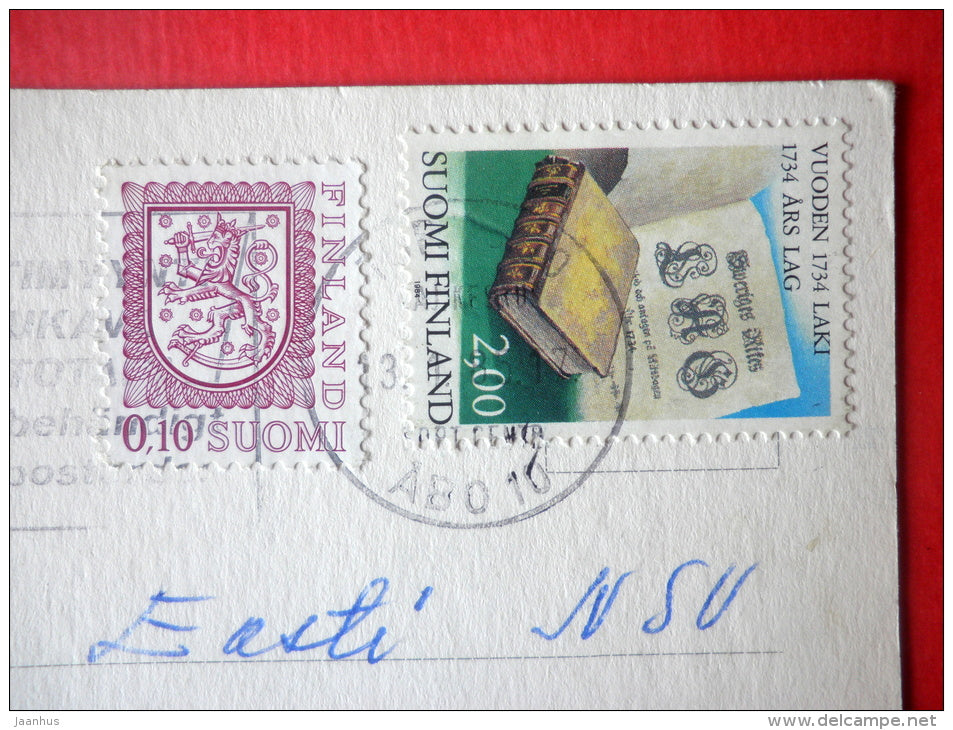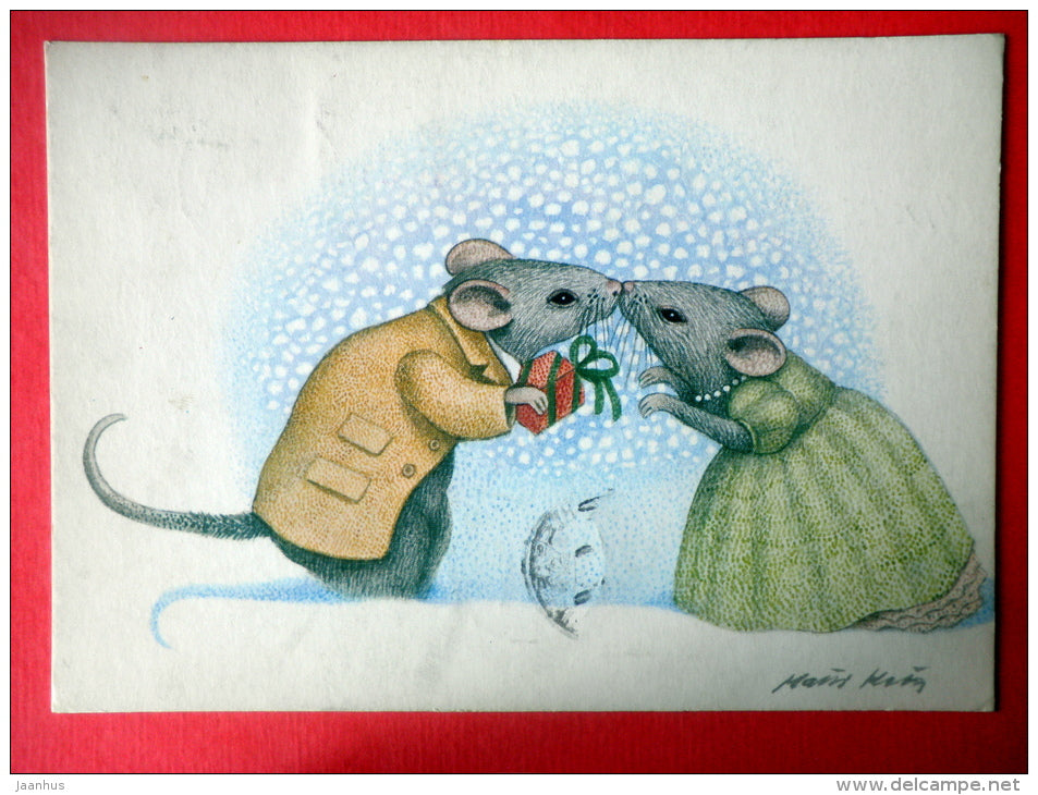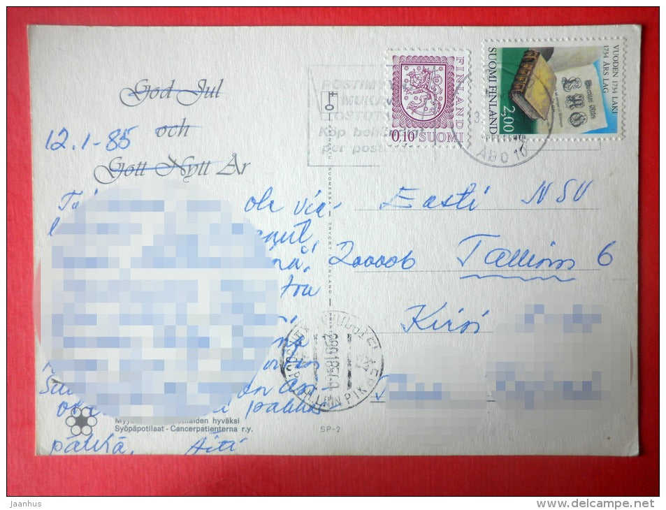 Weihnachtsgrußkarte – Maus – Geschenk – Buch – Finnland – geschickt von Finnland nach Estland, UdSSR 1985