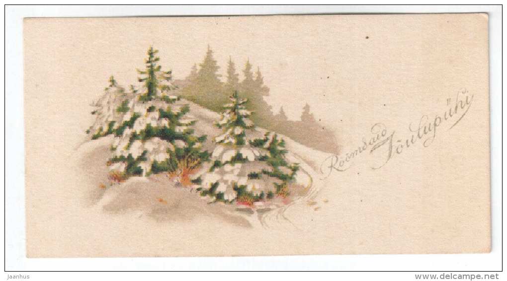 Weihnachts-Mini-Grußkarte – Tannen – alte Postkarte – in Estland im Umlauf – gebraucht