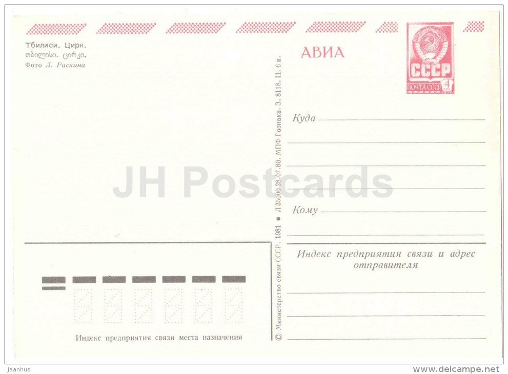 Zirkus - Tiflis - 1980 - Ganzsache - AVIA - Georgien UdSSR - unbenutzt