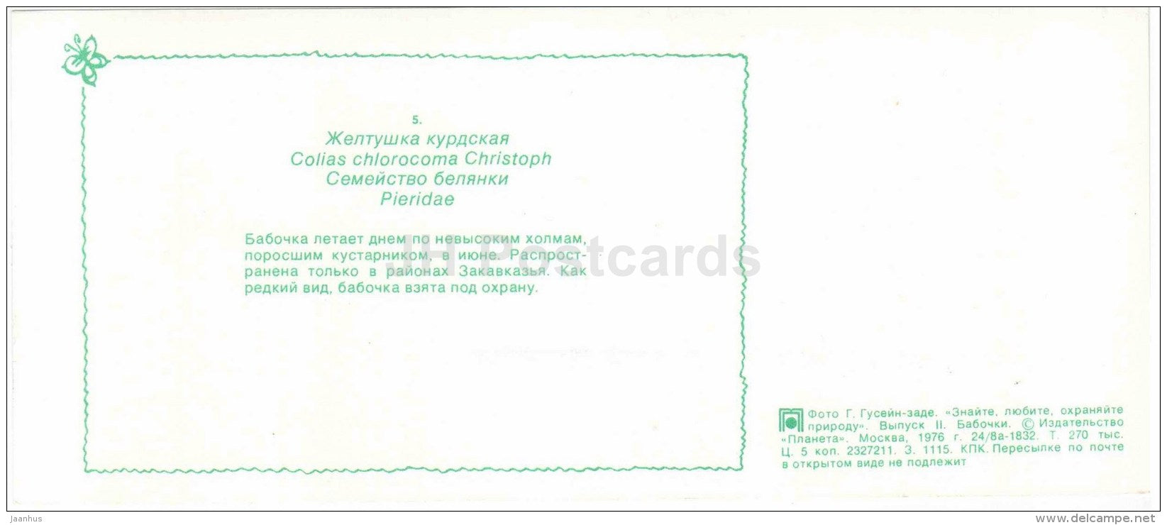 Colias chlorocoma – Schmetterling – 1976 – Russland UdSSR – unbenutzt