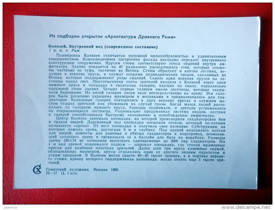Kolosseum, Innenansicht, 1. Jahrhundert n. Chr. – Architektur des antiken Roms – 1965 – Russland UdSSR – unbenutzt