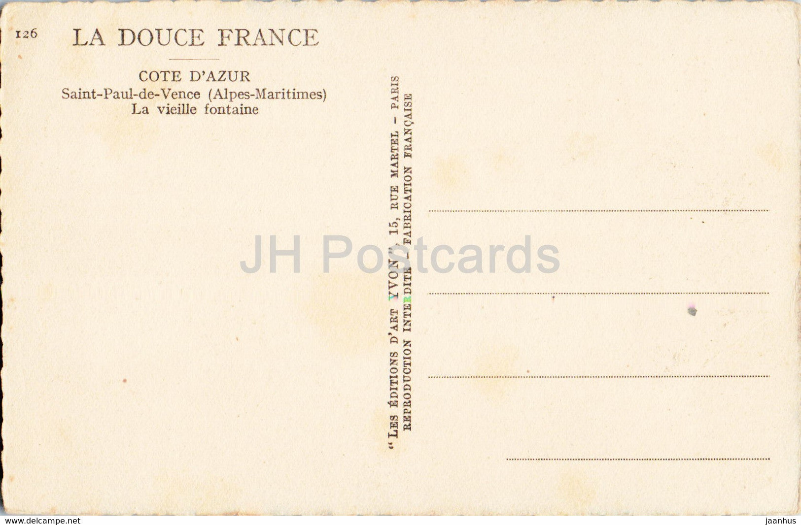 Cote d'Azur - Saint Paul de Vence - La vieille Fontaine - Illustration - 126 - alte Postkarte - Frankreich - unbenutzt