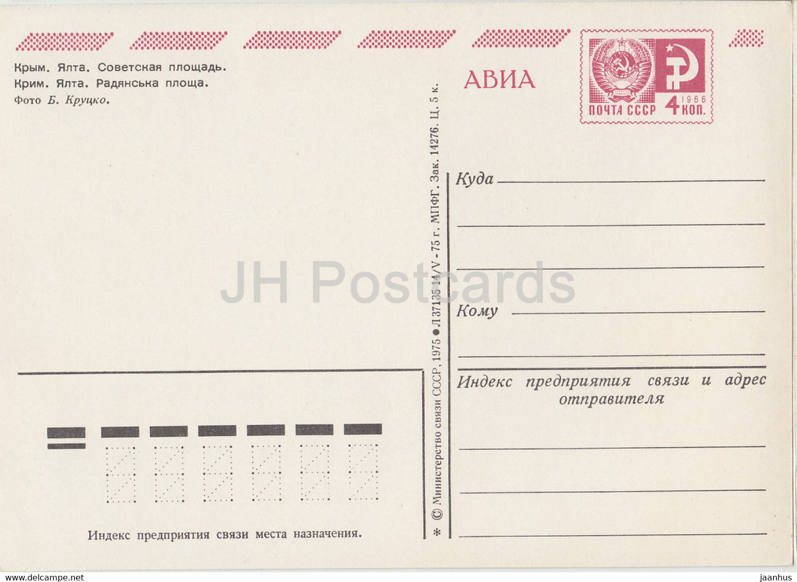 Krim - Jalta - Sowjetischer Platz - AVIA - Ganzsache - 1975 - Ukraine UdSSR - unbenutzt