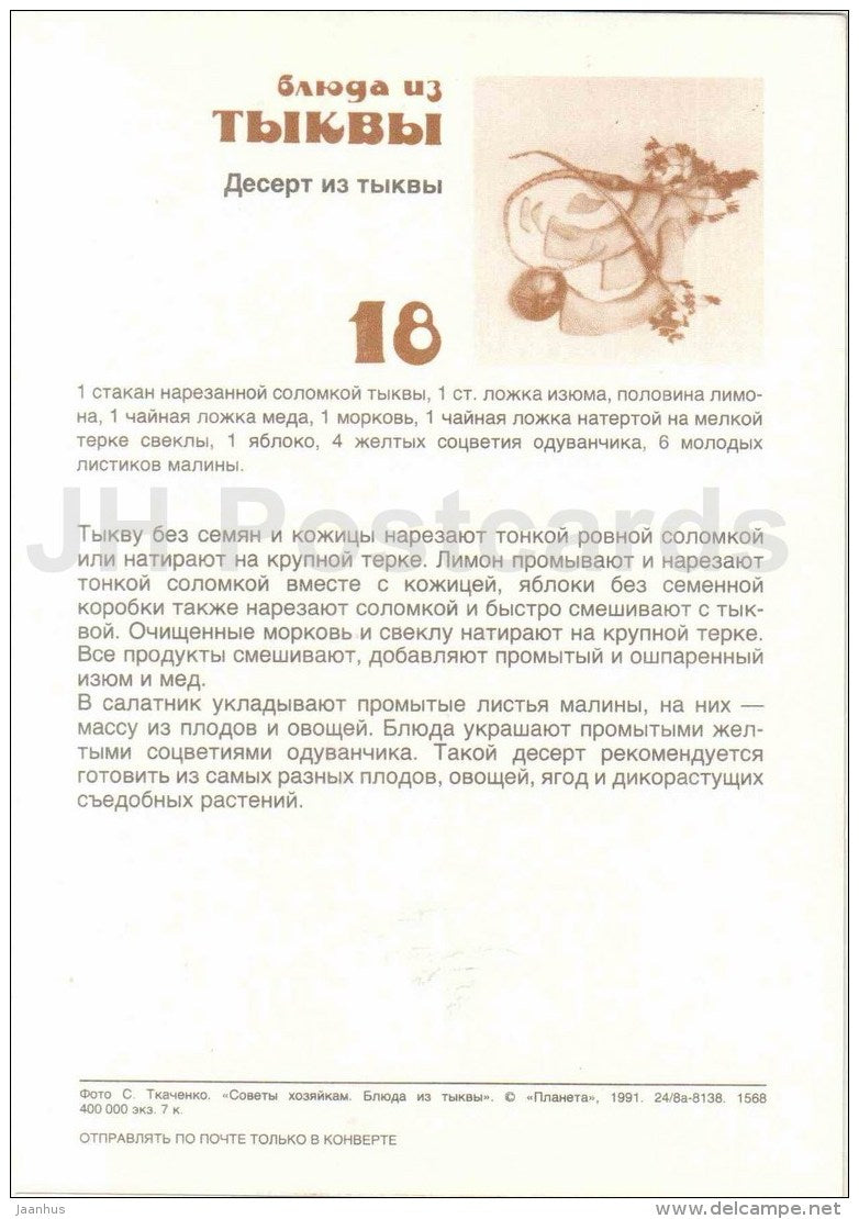 Dessert - Gerichte aus Kürbis - Rezepte - 1991 - Russland UdSSR - unbenutzt