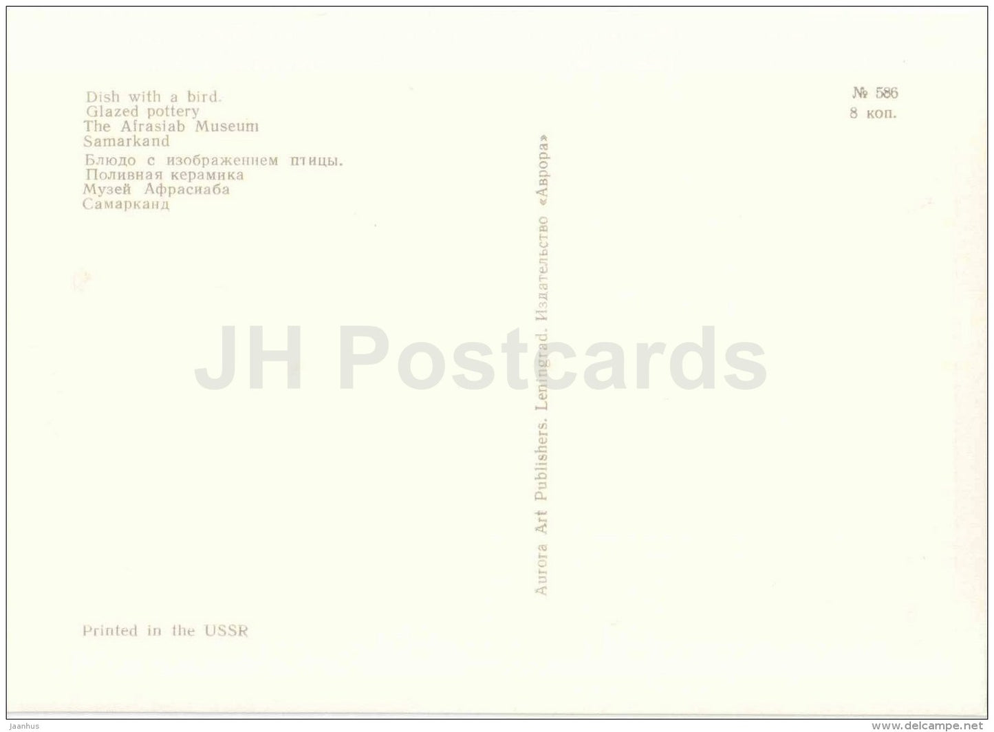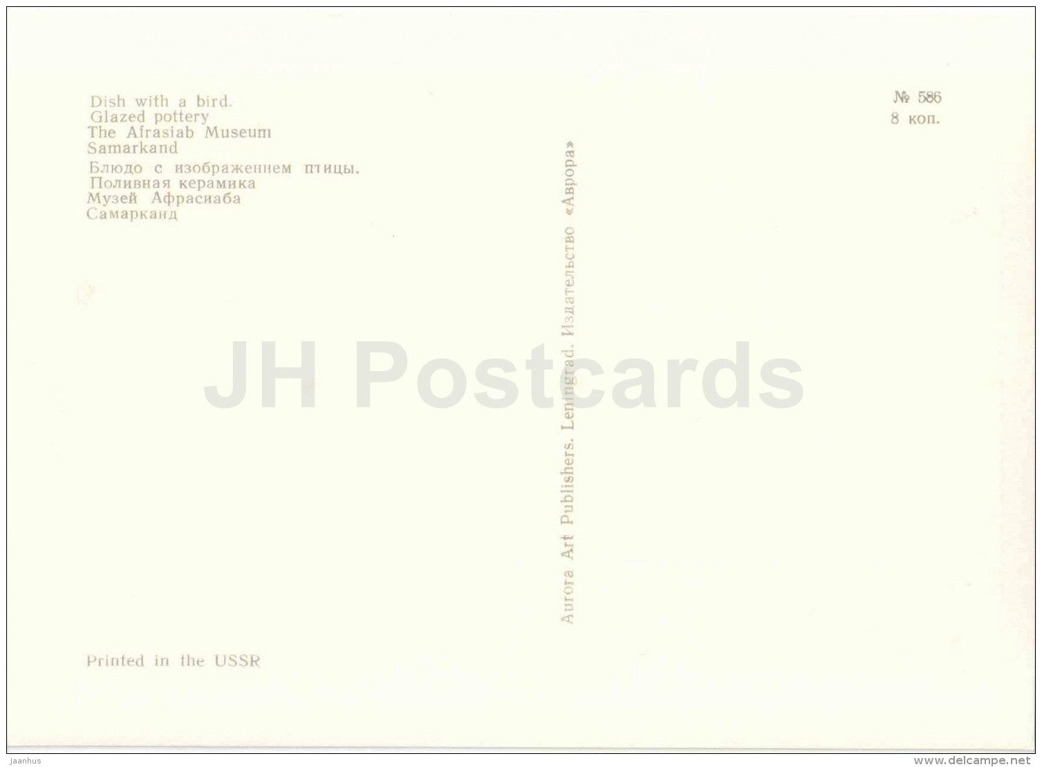 Schale mit Vogel, glasierte Keramik – Kunstschätze des antiken Samarkand – 1972 – Russland UdSSR – unbenutzt
