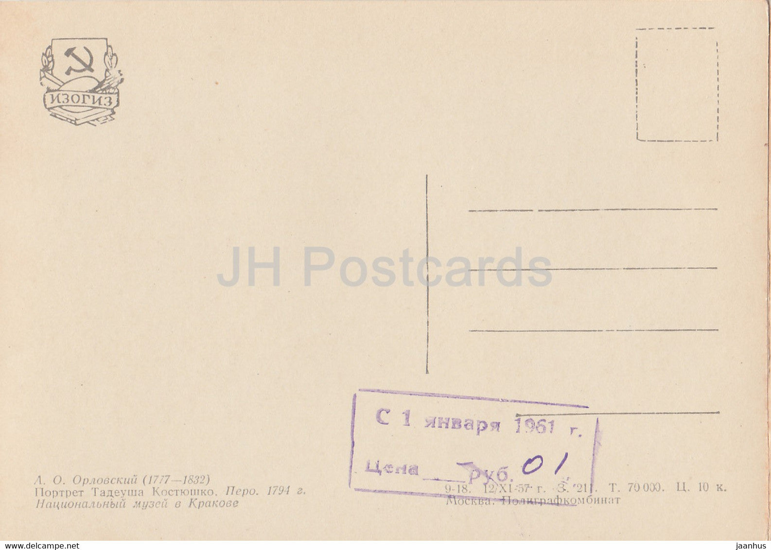 Zeichnung von A. Orlovsky – Porträt des polnischen Ingenieurs Tadeusz Kosciuszko – Russische Kunst – 1957 – Russland UdSSR – unbenutzt