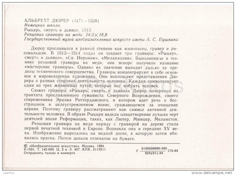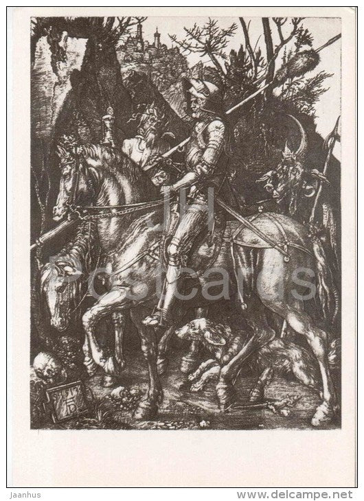 Zeichnung von Albrecht Dürer – Ritter. Tod und Teufel, 1513 – Pferd – deutsche Kunst – unbenutzt