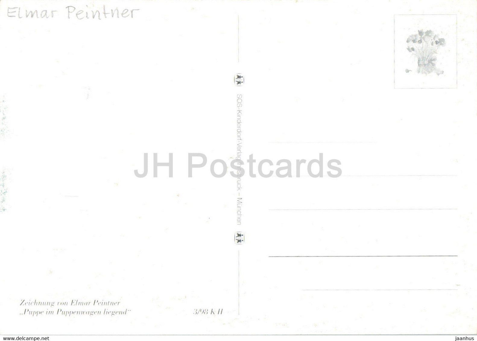 Zeichnung von Elmar Peintner - Puppe im Puppenwagen liegend - Kinderwagen - Baby - Deutsche Kunst - Deutschland - unbenutzt