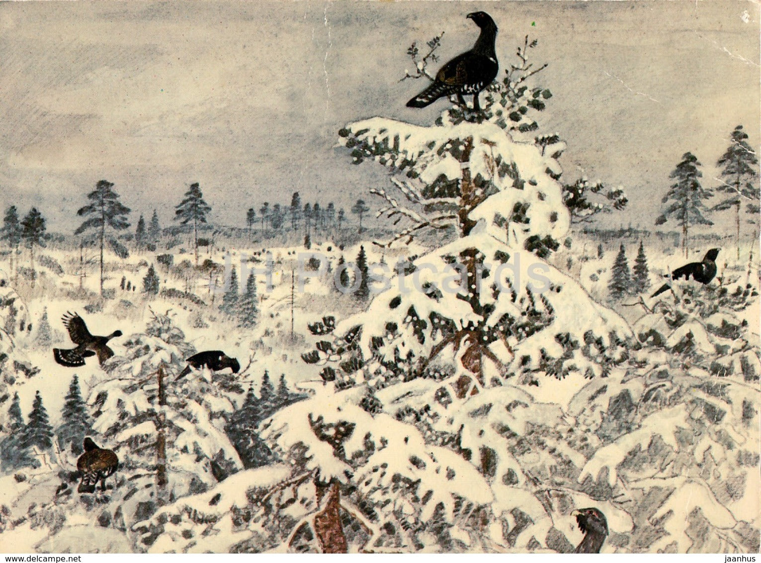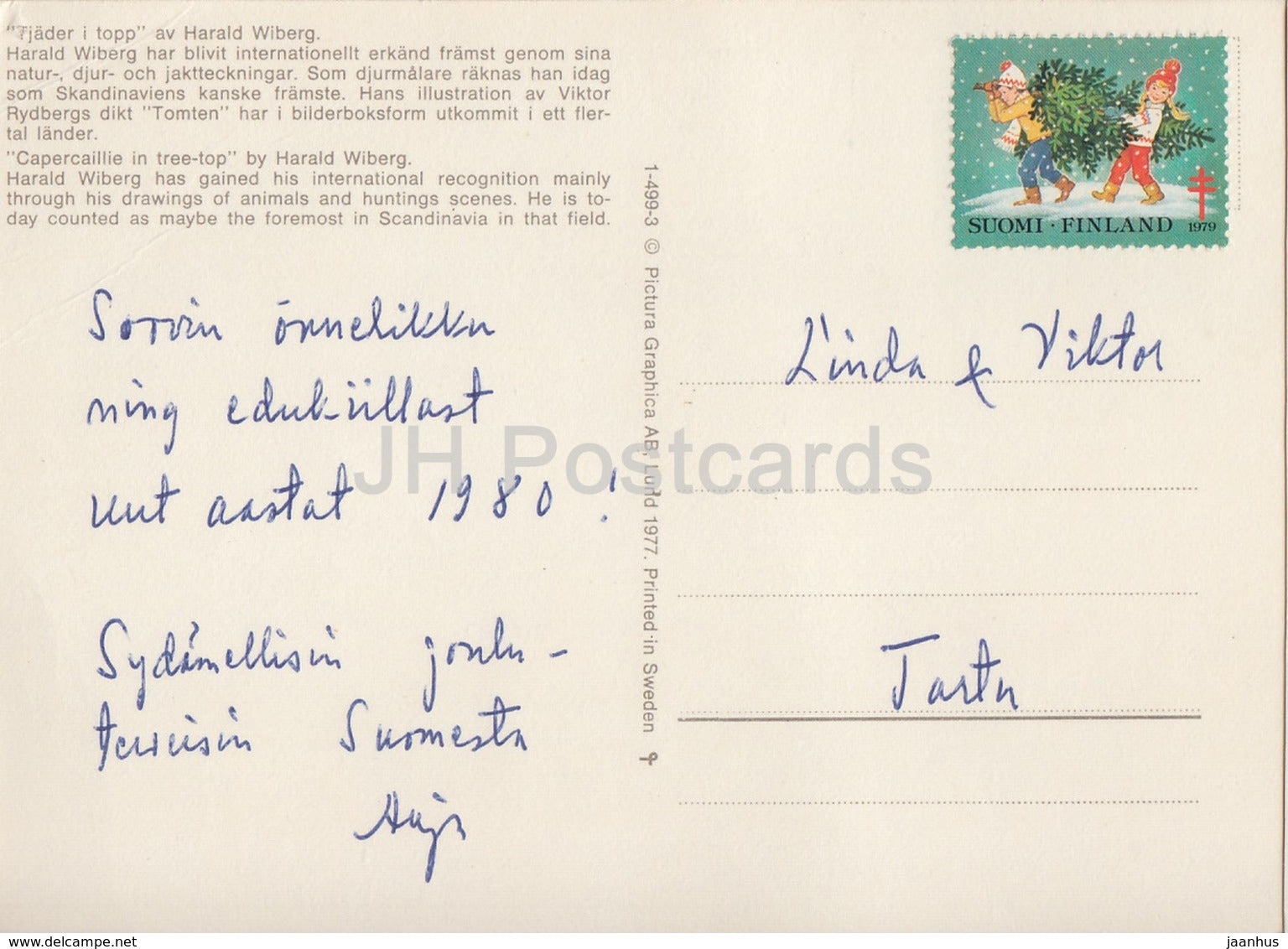 Zeichnung von Harald Wiberg – Auerhuhn im Baumwipfel – Vögel – schwedische Kunst – 1977 – Schweden – gebraucht