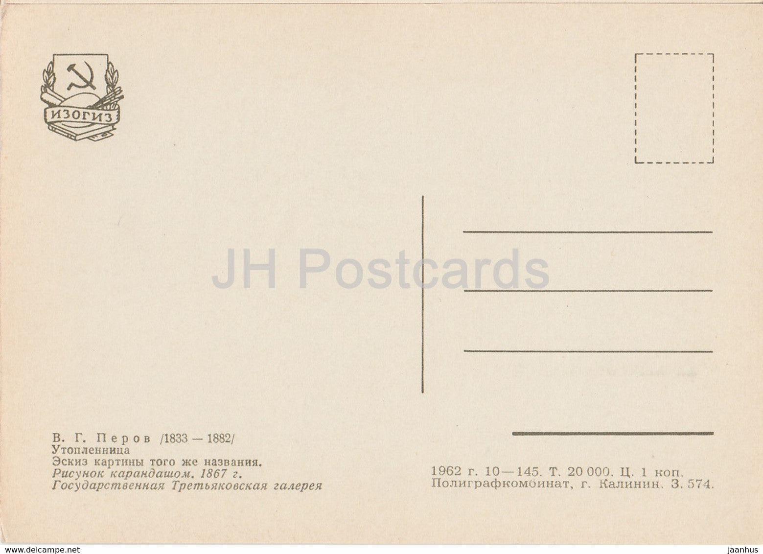 Zeichnung von V. Perov – Ertrunkene Frau – Russische Kunst – 1962 – Russland UdSSR – unbenutzt