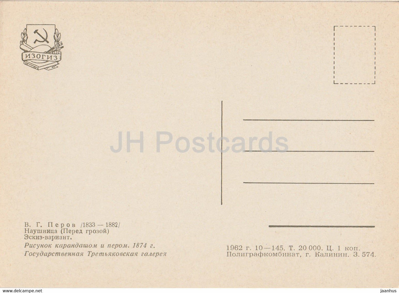 Zeichnung von V. Perov – Denunziant vor dem Donner – Russische Kunst – 1962 – Russland UdSSR – unbenutzt
