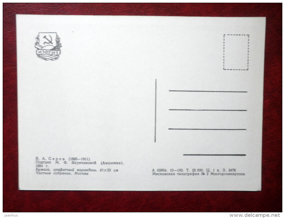 Zeichnung von V. Serov – Porträt von M. Yakunchikova, 1884 – Pferd – russische Kunst – unbenutzt