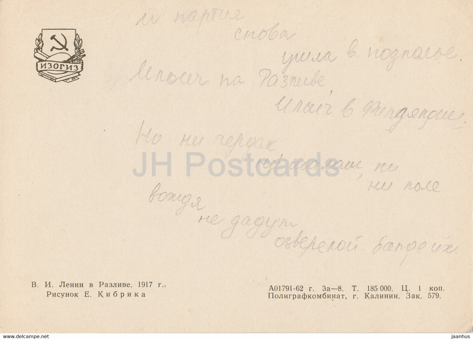 Zeichnung von Y. Kibrika – Lenin in Razliv, 1917 – 1962 – Russland UdSSR – gebraucht