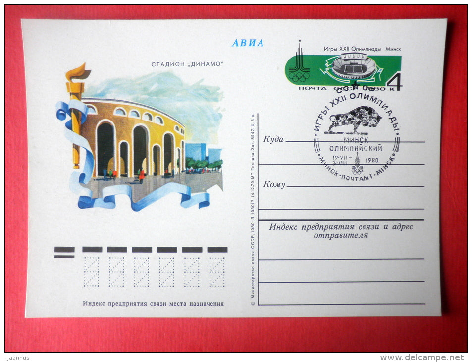 Dynamo-Stadion, Minsk – Olympische Spiele Moskau – gestempelte Briefpapierkarte – 1980 – Russland UdSSR – unbenutzt