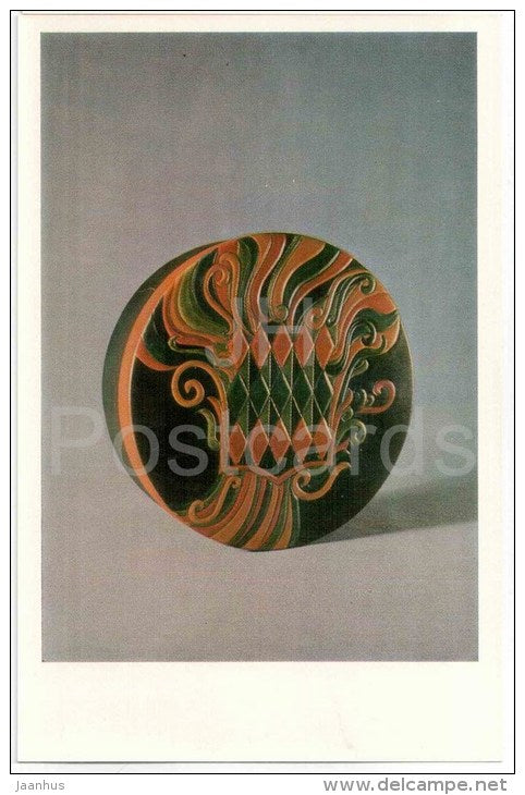 E. Külv – Runde Schatulle, 1972 – geprägtes Leder – Angewandte Kunst im sowjetischen Estland – unbenutzt
