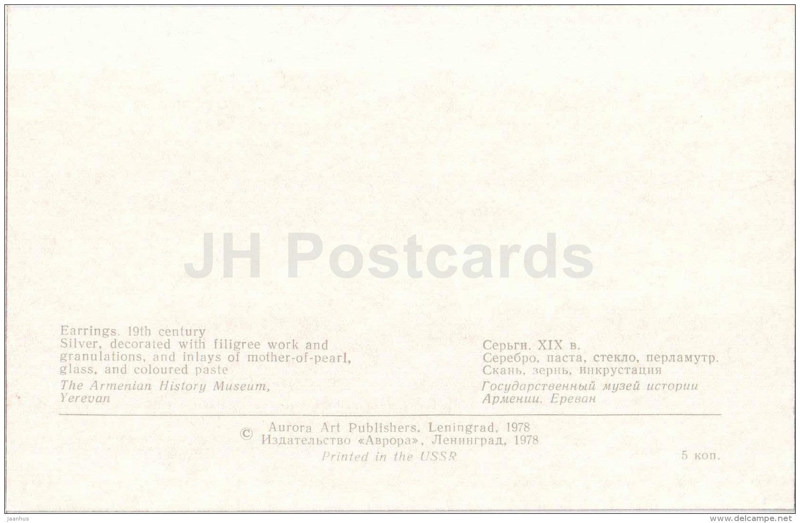 Ohrringe – Schmuck – Armenisches Geschichtsmuseum – 1978 – Russland UdSSR – unbenutzt