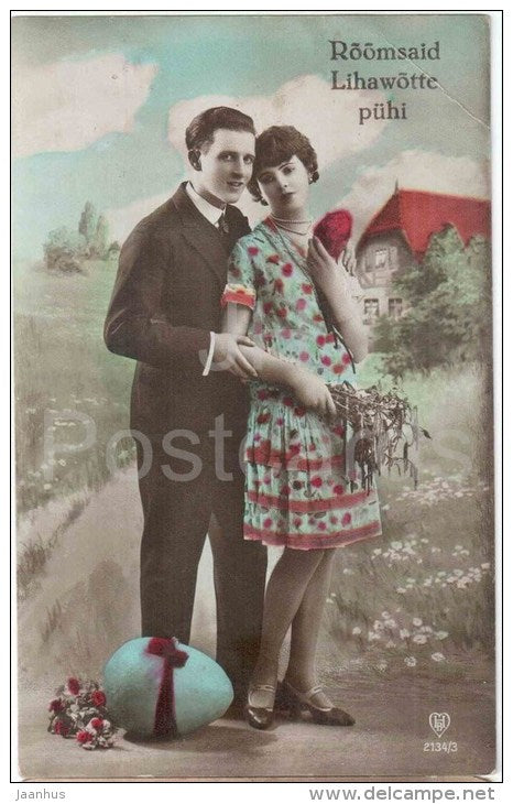 Ostergrußkarte – Paar – Mann und Frau – Eier – HB 2134/3 – im Umlauf in Estland 1930 Paide