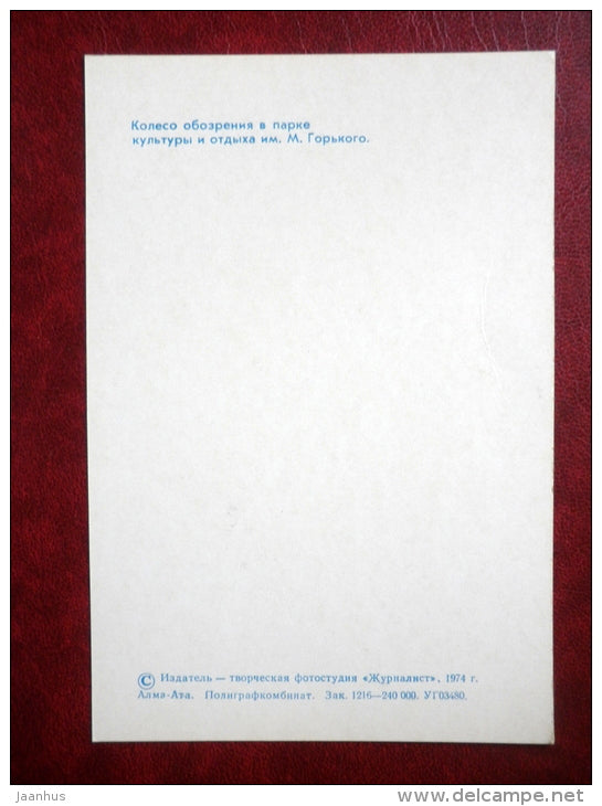 Riesenrad im Gorki-Park – Almaty – Alma-Ata – 1974 – Kasachstan, UdSSR – unbenutzt