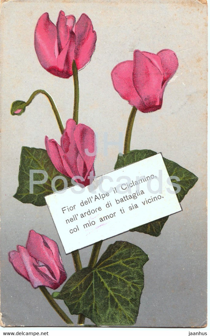 Fior dell'Alpe il Ciclamiino - rote Blumen - alte Postkarte - 1916 - Italien - gebraucht