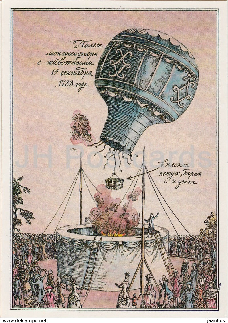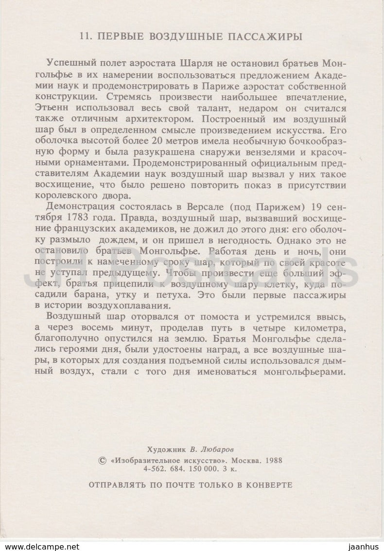 Erstflugpassagiere – Luftfahrtgeschichte – Illustration von V. Lyubarov – 1988 – Russland UdSSR – unbenutzt