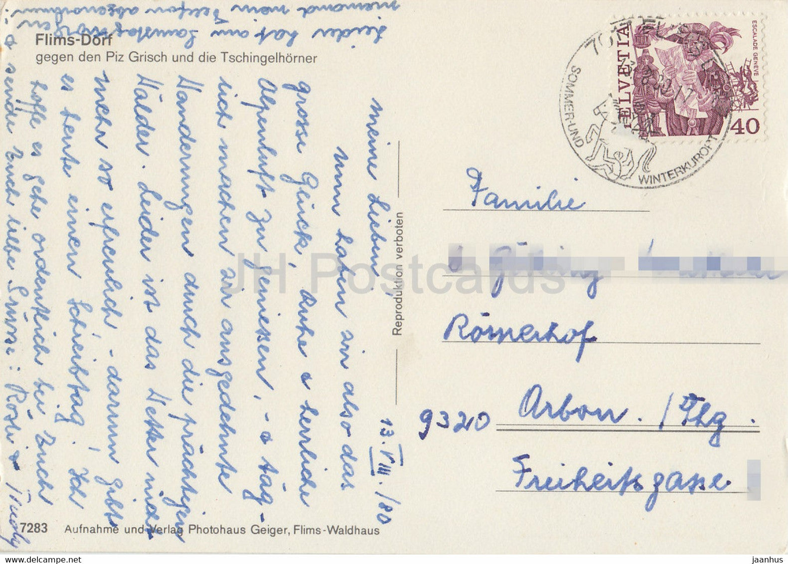 Flims Dorf gegen Piz Grisch - Tschingelhorner - 7283 - 1980 - Schweiz - gebraucht