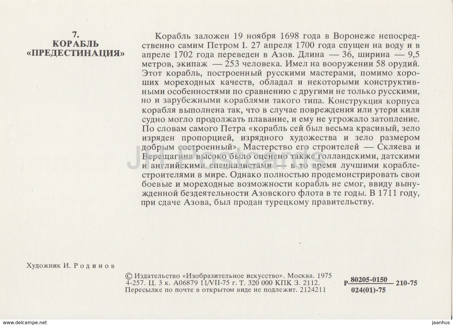 Goto Predestinatsia - Kriegsschiff - Segelschiff - Geschichte der russischen Marine - 1975 - Russland UdSSR - unbenutzt