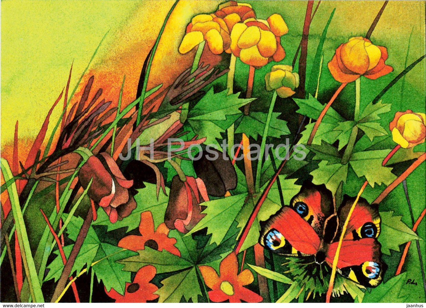 Grußkarte – von R. Lukk – Schmetterling – Kugelblume – Blumen – 1985 – Estland UdSSR – unbenutzt