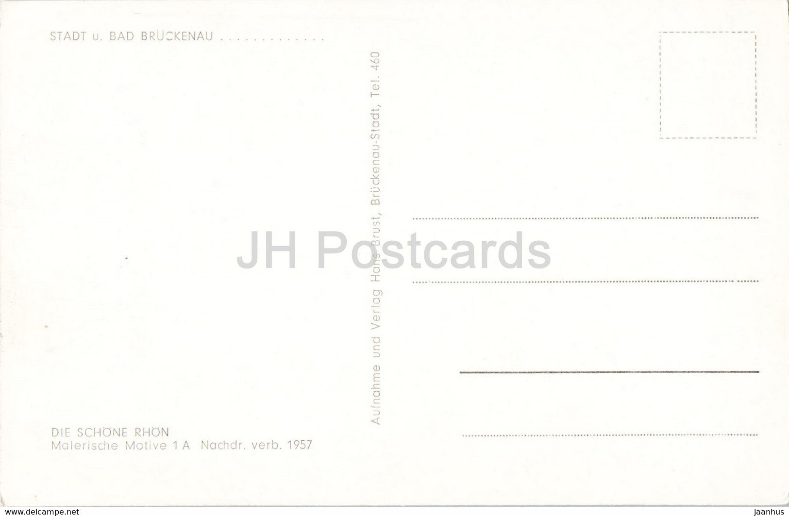 Gruss v Heilbad Stadt Brückenau - Dreistelzberg - Altstadt - Mineralquelle - Rathaus - alte Postkarte - Deutschland - unbenutzt