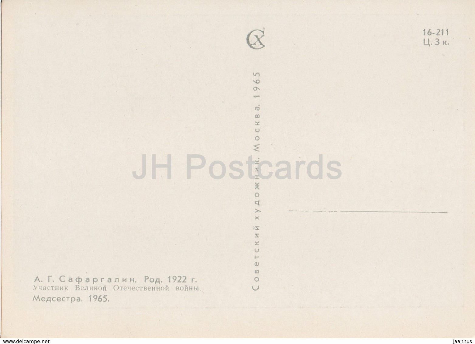 Guarding the World – Gemälde von A. Safargalin – Krankenschwester – Pferdekutsche – Militär – Kunst – 1965 – Russland UdSSR – unbenutzt