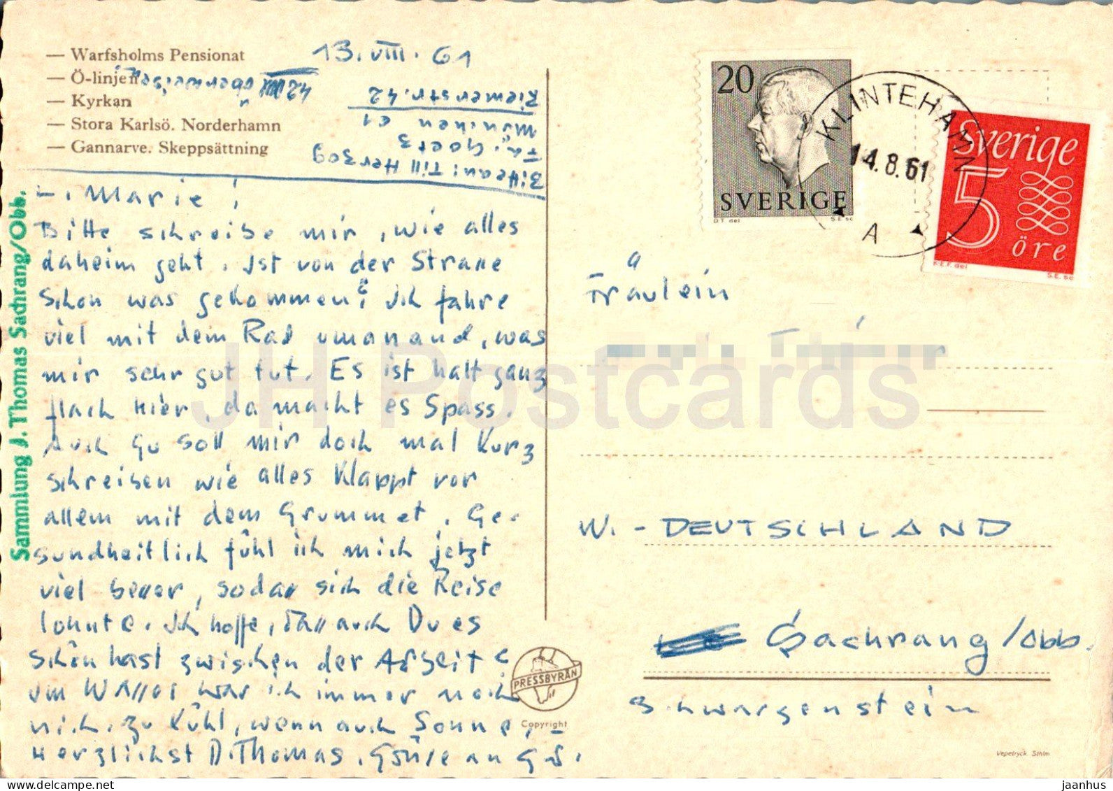 Halsning fran Klintehamn – Warfsholm pansionat – Kyrkan – Stora Karlso – Schiff – Multiview – 1961 – Schweden – gebraucht
